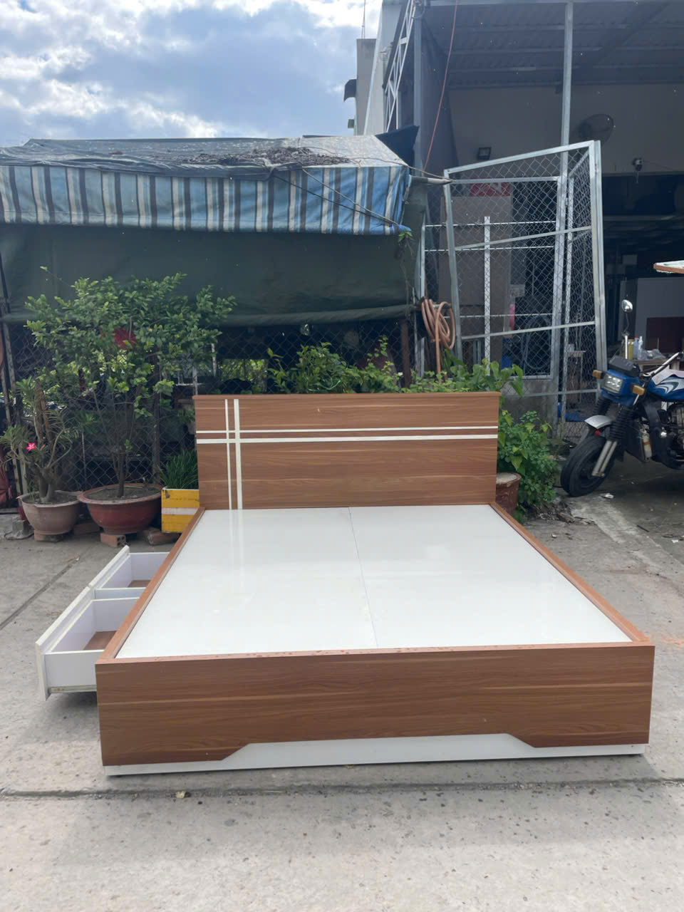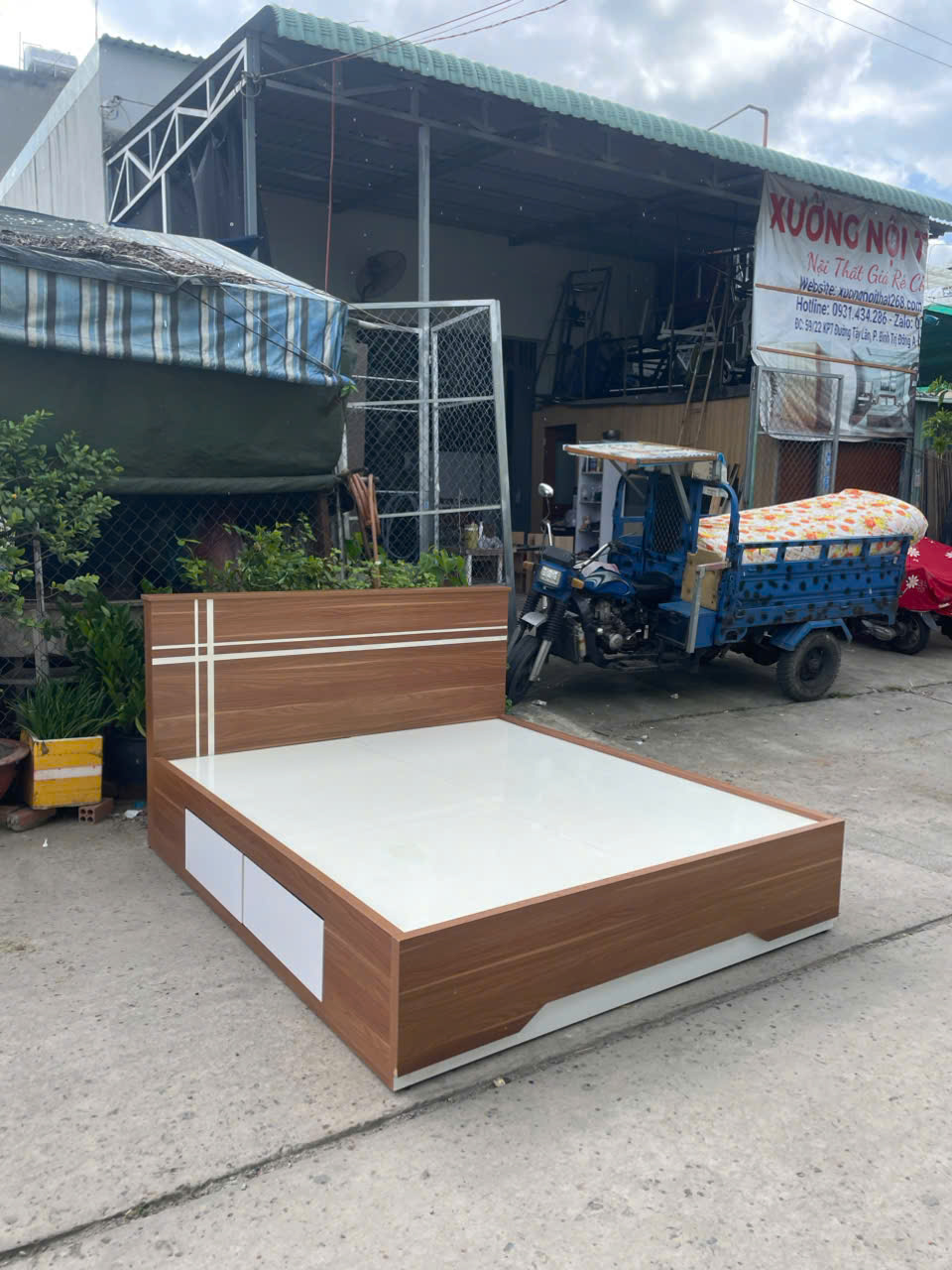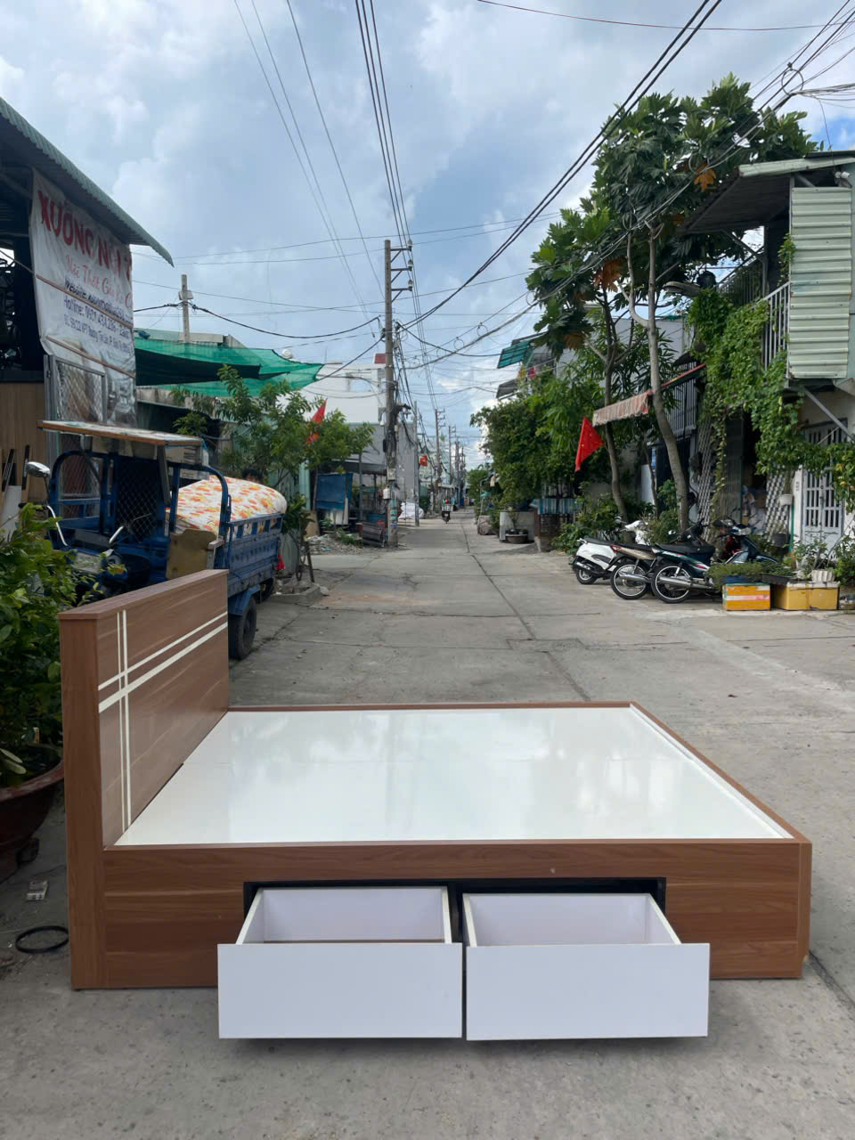 THANH LÝ GIƯỜNG GỖ MDF PHỦ MELAMINE - 2 HỘC KÉO